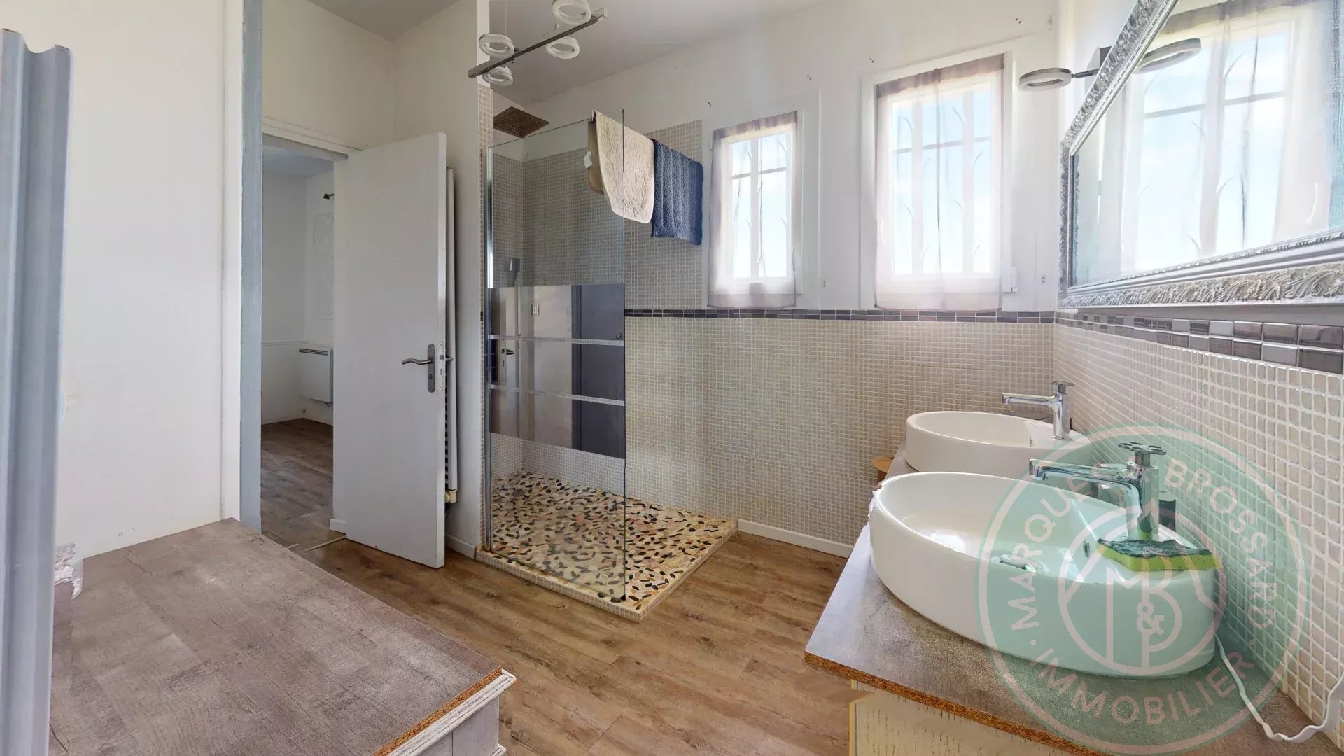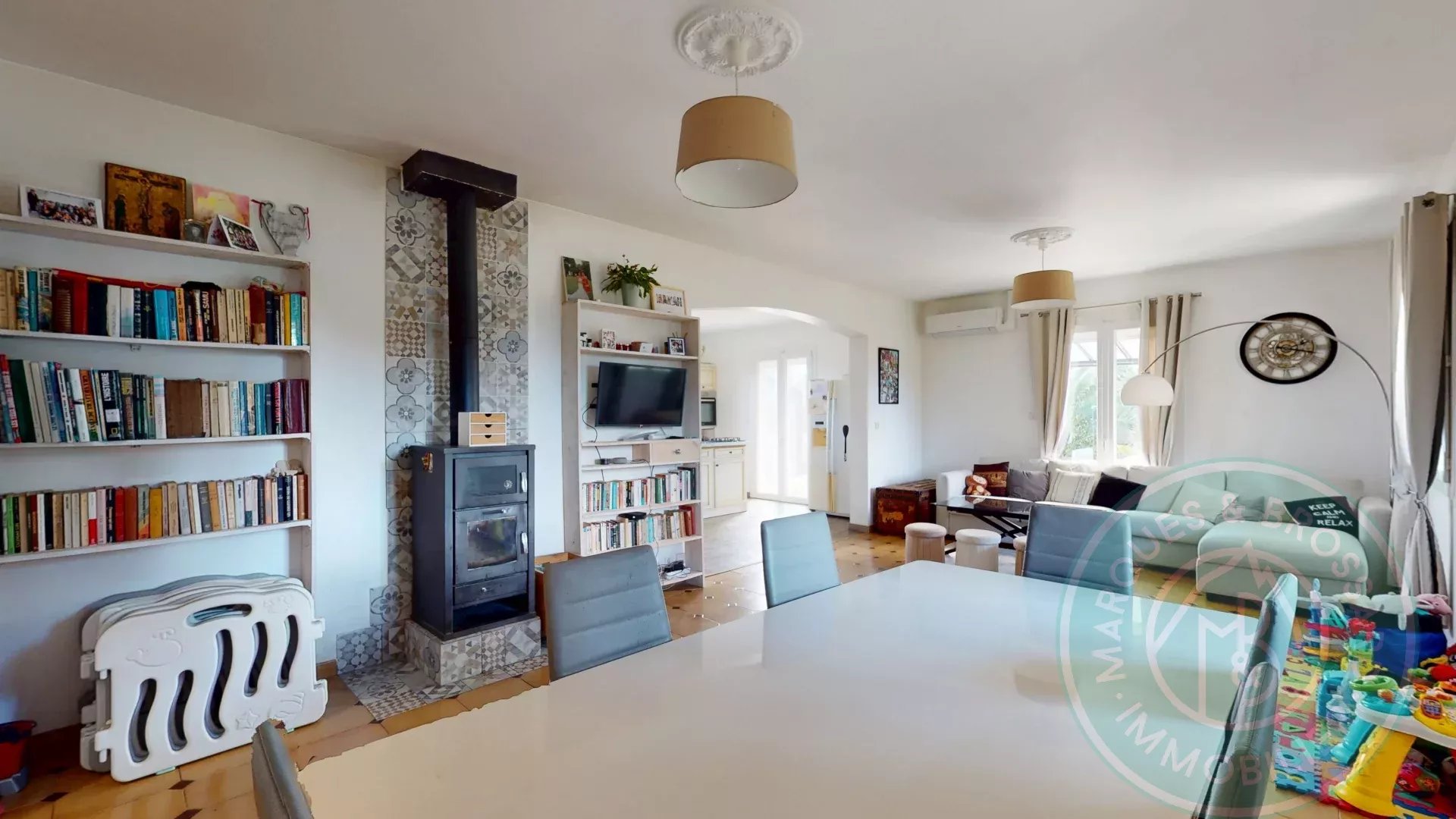 Dès l’entrée, le plafond cathédrale donne le ton : de beaux volumes, une luminosité exceptionnelle et une sensation d’espace. Découvrez ensuite un vaste séjour baigné de lumière, ouvrant sur une terrasse de 50 m² exposée plein soleil avec pergola et piscine pour profiter pleinement de l’extérieur. La cuisine semi-ouverte, entièrement équipée, dispose de son cellier attenant, pratique et fonctionnel.